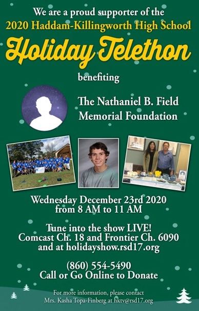 The Nathaniel B Field Memorial Foundation, Inc. were the recipients of the 2020 Haddam-Killingworth High School Holiday Telethon.