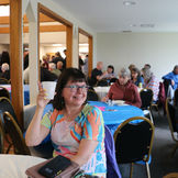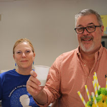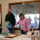 We'd like to thank Dino and Stella, for their continued support and generosity. Dino and Marie standing next to sandwich board for October 11, 2016 event!